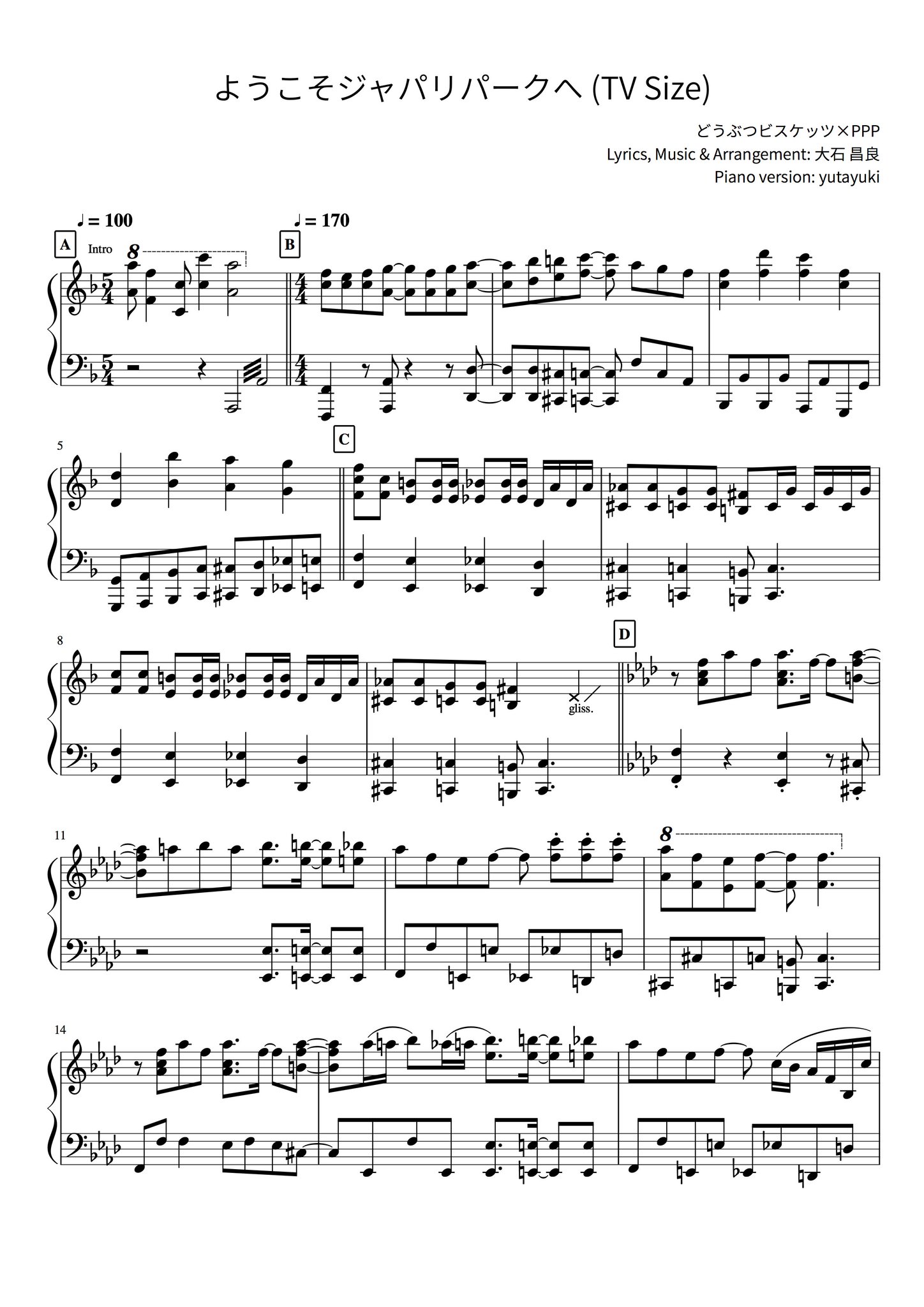 Yutayuki けものフレンズop ようこそジャパリパークへ のピアノアレンジバージョンの楽譜が出来ました Pdfで作ってあります たぶん人が弾けるようになってます ミスとかあったらごめんね もう長いことまともにピアノ弾いてないけものだからね